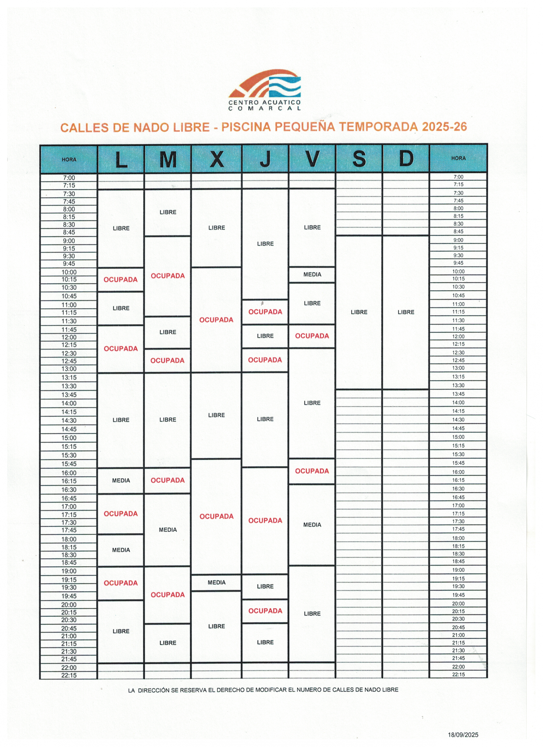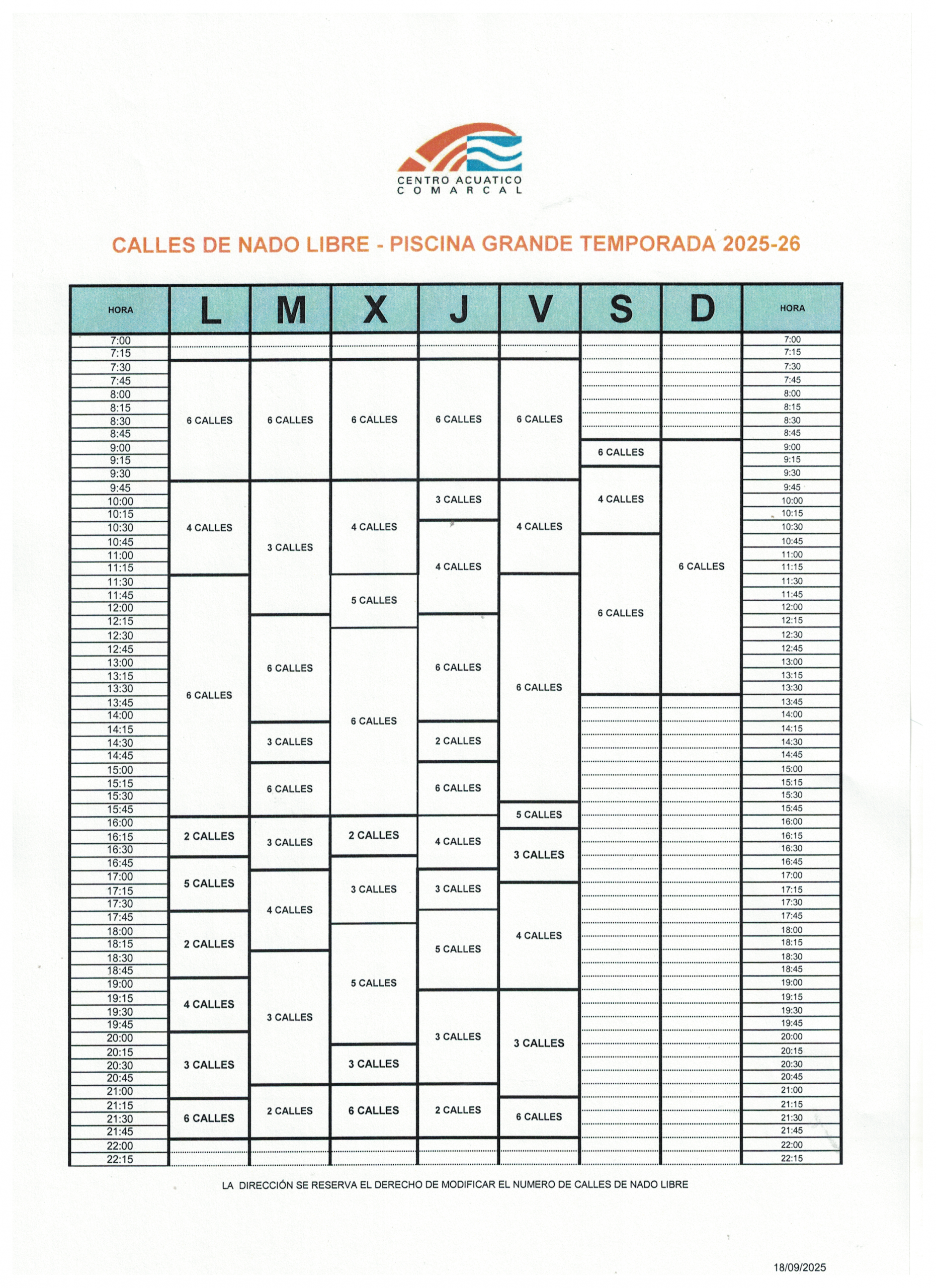 En todo momento estarán disponibles diversas calles para nado libre, dejando el resto para cursos natación y actividades acuáticas.